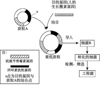 下图是将人的生长激素基因导入细菌B细胞内制造“工程菌”的示意图。已知细菌B细胞内不含质粒A,也不含质粒A上的基因。判断下列说法正确的是
