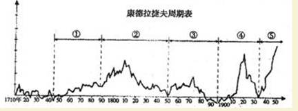25.下图为康德拉捷夫世界经济增长与衰退的波动周期表,图中周期②和周期⑤的经济增长 波峰分别凸显了“英国世纪”和“美国世纪”的到来,其中“英国世纪”是指
