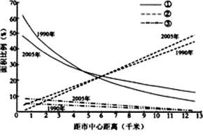 3.曲线①、②、③代表的土地利用类型符合一般城市三类用地时空变化特点的是