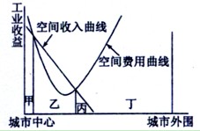 右图为某工业收益随空间变化曲线图,据此完成10~12题。
