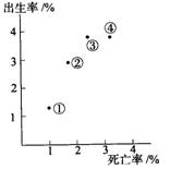 D.③④阶段之间,死生率的变化小于出亡率的变化