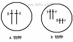 A种植物的细胞和B种植物细胞的结构如右图所示(仅 显示细胞核),将A、B两种植物细胞去掉细胞壁后,诱导二者的原生质体融合,形成单核的杂种细胞,若经过