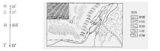 图4是我国西部某地区略图,图中左上方所示为当地铁路沿线的草方格沙障。读图回答9--10题。