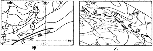 (1)说出图甲中等温线数值自北向南的变化规律及其原因。判断图甲所示等温线分布表示的季节,说明判断理由