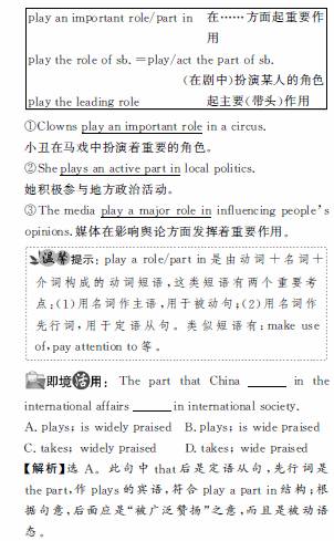 5. play a part (in)扮演一个角色;参与