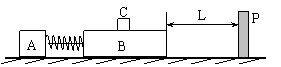 19.在光滑水平面上有三个小滑块,A、B用细线相连,中间有一压缩的弹簧(弹簧与滑块不拴接),在滑块B上的中间部位放有一个可视为质点的小滑块C。已知弹簧最初的弹性势能Ep=1.35J,A、B、C三个滑块的质量分别为mA=3kg,mB=2kg,mC=1kg,B与C间的动摩擦因数为μ=0.2,B的右端距固定在地面上的竖直弹性挡板P的距离为L=0.5m。现剪断AB间的细绳,A、B弹开(A、B从弹开到与弹簧分离的时间极短,忽略不计),一段时间后B与P发生弹性正碰,整个运动过程中C一直没有滑离B的表面。(g取10m/s2)