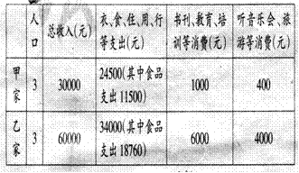 11.右表是某地甲乙两家2010年的消费情况统计。从表中大致可以推断出
