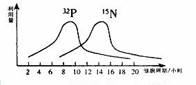 某科学家用15N标记胸腺嘧啶,32P标记尿嘧啶来研究某植物的有丝分裂。已知该植物的细胞周期为20小时,两种放射性元素的峰值在细胞周期中如图所示。则两个峰值(左右)所代表生理过程分别是 ( )