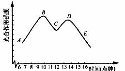(9分) 右图为在夏季睛朗白天某植物叶片光合作用强度的变化曲线图,请观察后回答: