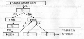 28.(8分)某患者一只眼球受伤导致晶状体破裂,若不立即摘除,则另一只健康眼睛也将失明,这在免疫学上称为自身免疫病。其主要致病过程如下图所示。请将图中缺少的内容补充完整。