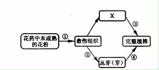 (1)图中①表示的是该花粉培养过程中的 过程,②表示的是 过程,X代表的是 。