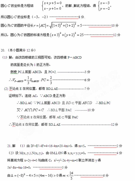 21.(本小题满分12分)已知曲线C:x2+y2-2x-4y+m=0