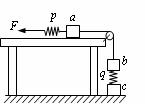 5. 三个重量均为10N的相同木块a、b、c和两个劲度系数均为500N/m的相同轻弹簧p、q用细线连接如图,其中a放在光滑水平桌面上。开始时p弹簧处于原长,木块都处于静止。现用水平力缓慢地向左拉p弹簧的左端,直到c木块刚好离开水平地面为止。该过程p弹簧的左端向左移动的距离是(轻弹簧和细线的重量都忽略不计) ![]()