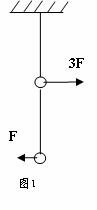 12.如图1所示,用等长的轻绳悬挂两个质量相同的小球,今在两小球上分别施加大小分别为3F和F、方向相反的水平恒力,则平衡后应该如图2中的