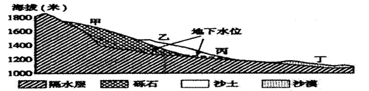 下图为我国某区域地形剖面图与地下水埋深图。完成28-29题。![]()