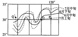 右图表示世界某地区一种天气现象移动的基本规律(实线代表开始月份,虚线代表结束时间),中间两条经线间隔为5°。据此完成4-5题。