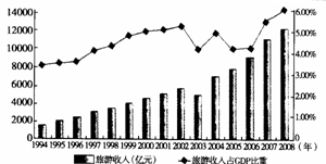 (3)试述图中2003年我国国际旅游收入较低的主要原因和现代旅游的主要特点。(5分)