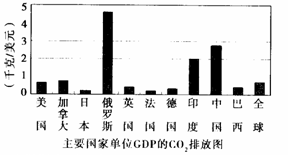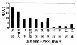 (1)根据主要国家人均CO2排放图判断,CO2排放量最大的两个国家是 、 。(2分)