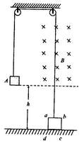 边在地面上,各段绳都处于伸直状态,从如图所示的位置将A从静止释放。一段时间后线框进入磁场运动。当线框的