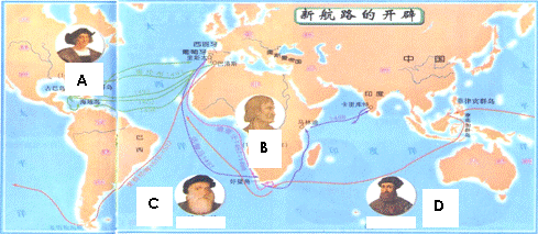 20.根据下图中新航路开辟的路线判断,哥伦布应该是哪一位?