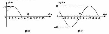 21、图甲是一列沿x轴正方向传播的简谐横波在t=0时刻的图像,此刻x=5m的质元刚开始振动。图乙是该波在t=0.2s时刻的波的图像,已知这段时间内x=7m的质元Q有两次到达波峰的经历,则( )