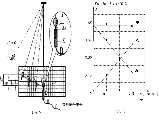 (1)图(b)的图像中,表示小球的重力势能Ep、动能Ek、机械能E随小球距D点的高度h变化关系的图线分别是__________________(按顺序填写相应图线所对应的文字)。
