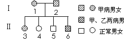 25、右图是具有两种遗传病的某家族系谱图,设甲病显性基因为A,隐性基因为a,乙病显性基因为B,隐性基因为b。若Ⅰ-2无乙病基因。下列说法不正确的是( )