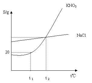 D.温度高于t2℃时,KNO3的溶解度大于NaCl 的溶解度