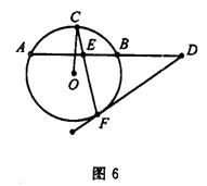如图6,AB是⊙O的弦,C、F是⊙O上的点,OC垂直于弦AB,过F点作⊙O的切线交AB的延长线于D,连结CF交AB于E点。