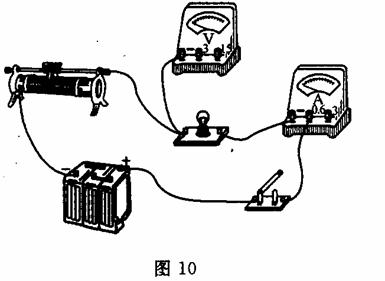 (1)实验时要求加在灯泡两端的电压从0调到12 V,请在图10所示的电路中再接入所需导线,完成实验电路。