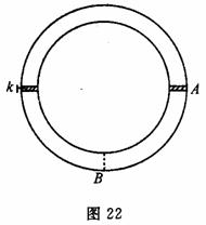 (2)(10分)如图22所示,在一圆形管道内封闭有理想气体,用一固定活塞k和一不计质量可自由移动的活塞A将管内气体分割成体积相等的两部分,温度都为T0=300