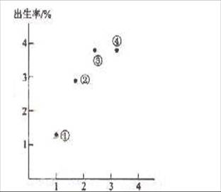 甲市2008年户籍人口出生9.67万人,出生率为0.699%;死亡10.7万人,死亡率为0.773%。甲市户籍人口这种自然增长态势已持续14年。下图显示四个地区的人口出生率和死亡率