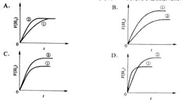 8、相同体积、相同pH的某一元强酸溶液①和某一元中强酸溶液②分别与足量的锌粉发生反应,下列关于氢气体积(V)随时间(t)变化的示意图正确的是
