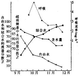 A.冬季来临过程中,自由水明显减少是呼吸速率下