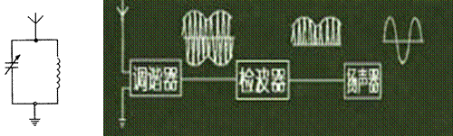 ②调谐:使接收电路产生电谐振的过程。调谐电路如图所示。通过改变电容器电容来改变调谐电路的频率。