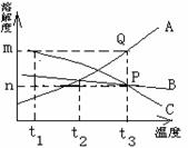三种固体物质A、B、C溶解度曲线如右图所示,试回答: