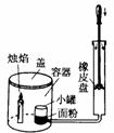 31、图6是研究粉尘爆炸的实验装置。小明迅速压下打气筒内橡皮盘的过程中,橡皮盘下的气体压强将 (选填“变大”、“变小”或“不变”)。通过打气筒得到的压缩空气将小罐中的适量面粉吹满整个容器,面粉在容器内迅速燃烧,发生了爆炸。这一现象表明了化学反应的剧烈程度与 有关。