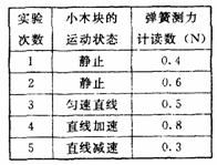 在探究摩擦力的实验中,用弹簧测力计水平拉一放在水平桌面上的小木块,小木块的运动状态和弹簧测力计的读数如右表所示(每次实验时,木块与桌面的接触面相同),则由右表分析可知 ( ) ( )