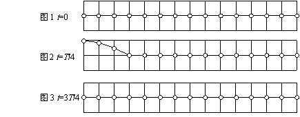 37、细绳的一端在外力作用下从t=0时刻开始做简谐运动,激发出一列简谐横波。在细绳上选取15个点,图1为t=0时刻各点所处的位置,图2为t=T/4时刻的波形图(T为波的周期)。在图3中画出t=3T/4时刻的波形图。