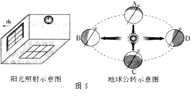 图5为“某地阳光照射示意图和地球公转示意图”,读图完成12-13题