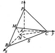 ,N为AB上一点,AB=4AN, M、S分别为PB,BC的中点.以A为原点,射线AB,AC,AP分别为x,y,z轴正向建立如图空间直角坐标系.