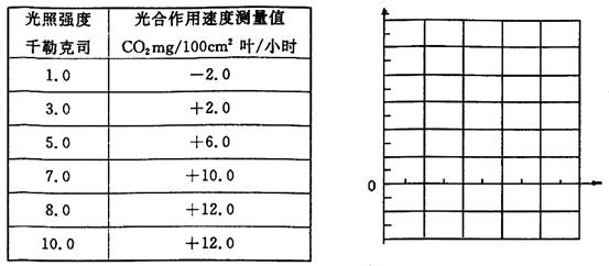 (5)在一定浓度的 CO2和适当的温度条件下,测定某双子叶植物叶片在不同光照条件下的光合作用速度(以CO2mg / 100cm2 叶/小时表示),结果如下表。表中负值表示CO2释放量,正值表示CO2吸收量。