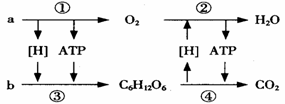 36.(14分)下图表示绿色植物叶肉细胞内发生的光合作用和有氧呼吸的过程,图中a、b为光合作用的原料,①-④表示相关过程,据图回答: