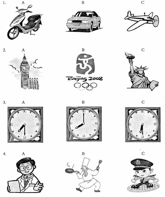 A)根据录音,从A、B、C、D中找出合适的图画。(听一遍)