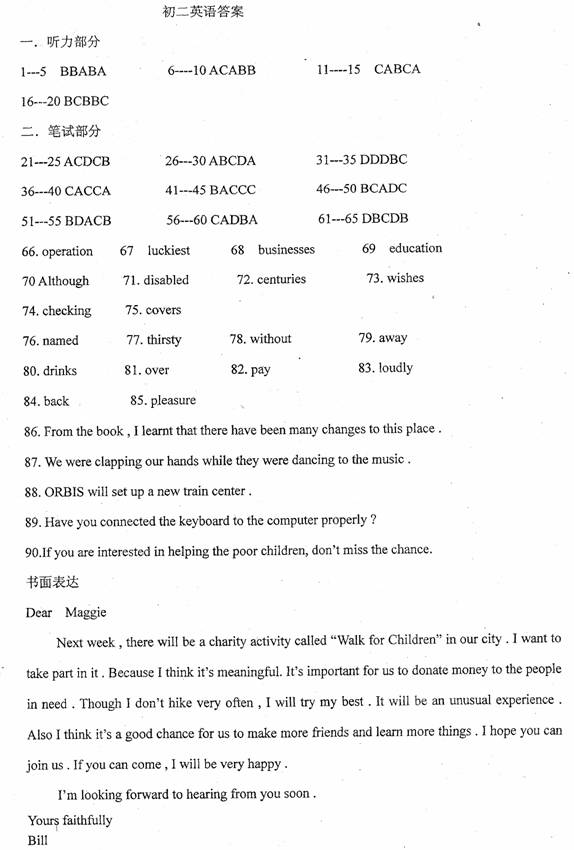 下周在Bill的城市里有一个主题为“Walk for Children”的慈善活动,Bill想要参加,请根据下面所给提示,以Bill的身份给他的朋友Maggie写一封信,邀请她一起参加。要求格式正确,不少于70个词。