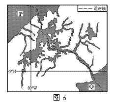 图6为世界某运河区分布略图,图中虚线为运河航线。回答17-19题。