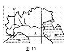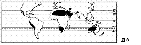 22.图8是世界某自然带分布示意图(阴影部分),影响该自然带分布的最主要因素是