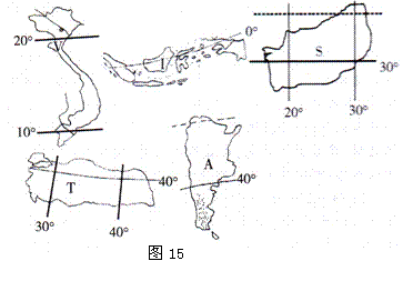 44.(9分)图l5中V、I、S、T、A五个国家被称为“展望五国”,它们分别是越南、印度尼西亚、南非、土耳其和阿根廷。有经济研究机构推算.从2005至2050年.在现有经济规模基础上,西方七国最多可扩大2.5倍.“金砖四国”可扩大20倍,而“展望五国”可扩大28倍,有望成为新兴市场队伍中的明星。读图表资料,回答下列问题。