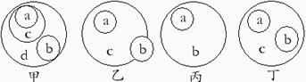 D.丁图可体现出细胞(c)、核糖体(a)和线粒体(b)的关系
