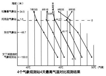 (2)据图分析吐鲁番地区日最高气温的分布特征?历史上,吐鲁番气象观测站两次出现47.7℃的高温,请结合图中的气温观测资料分析艾丁湖底可能达到的最高气温?(9分)
